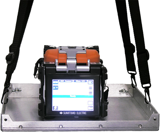 The MPF-01 Mini Work Platform is a one-of-a-kind, versatile tool designed to supply a functional and secure working area for splicing applications in the FTTP/FTTH network. The compact and portable design of the MPF-01 provides the means to secure a fusion splicer and accessory tools in a position close to the ONT. The platform can be mounted to a pole or ladder with no additional hardware. The MPF-01 allows the fusion splicer to be optimally positioned vertically and horizontally to maximize available work space. The technician can also mount a fiber cleaver at three different locations in front of the splicer. The platform is designed to hold various Sumitomo fusion splicers. The compact design of the MPF-01 Mini Work Platform minimizes the amount of storage space required, while maximizing the technician’s work space in taut-sheath environments.
