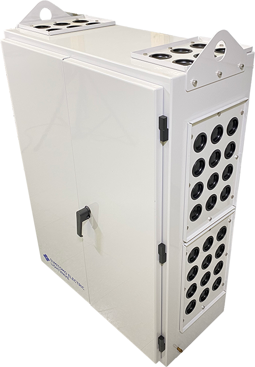 | FTHFC-10K-V-SK1-NT | 1 – V-HSX Cabinet (10,368f Splice Capacity) 1 – Work Platform 4 – 6 Cable Gland Shingle 2 in. (51 mm) Holes, Top/Bottom 4 – 12 Cable Gland Shingle 1.875 in. (48 mm) Holes, Left/Right | 32 x 42.1 x 14.8 inch (813 x 1,070 x 377 mm) |