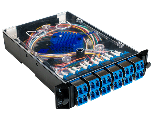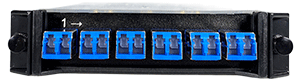 In addition, the cassettes feature translucent shuttered LC adapters when a VFL is used, a clear cover for visibility, a variety of mounting features, including options for wall- or DIN Rail-mounting (snap-on DIN-Rail mounting accessory available), and can be outfitted with MPO/MTPs.