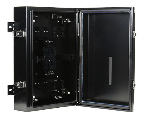 Sumitomo Electric Lightwave’s IP66 (NEMA 4X Equivalent) Transit Enclosure feature important innovations and benefits that solve space, usability, and functionality challenges while also providing a secure, clean, and cost-efficient distribution point in which to transition between different cable formats (including ribbon, loose buffer, and tight buffer) and fiber counts, protect fiber terminations (bare fibers), and manage excess cable slack. These indoor environmentally hardened and water-tight enclosures are key-lockable and are wall or ceiling-mountable. In addition, their size and low profile make these enclosures ideal to be deployed in tunnel and platform applications.