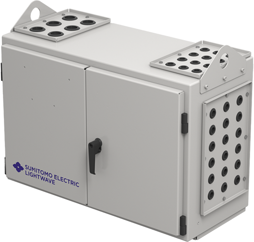 Often one size does not fit all. That is also the case when it comes to fiber entrance cabinets. While vast cabinets with high fiber counts are the perfect solutions for large data centers, there is still a need for a spacious cabinet, but a smaller number of fibers. Sumitomo Electric Lightwave has recognized this need and has created a cabinet solution that brings all the benefits of the V-HSX in smaller cabinet space with one-third of the fiber count. The 3K-V-HSX Cabinet will be the transition point between outside plant cables and indoor distribution cables allowing for a capacity of 3,456 fibers. Through its number of cable openings and features, the 3K-V-HSX solution will solve the needs of any private network or data center entering into or requiring a low fiber optic distribution frame.